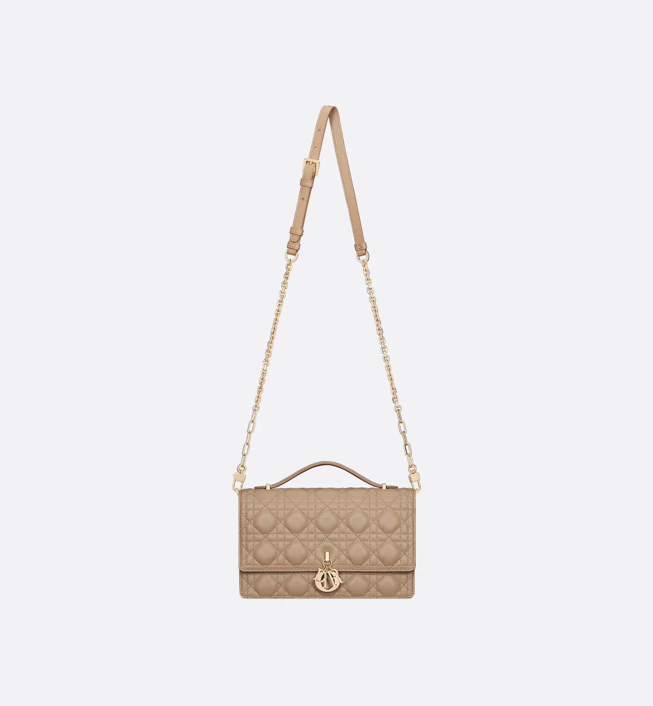 The My Dior Top Handle bag presents an elegant and functional design. The bag is crafted in black lambskin with Cannage stitching and features a flap enhanced by D.I.O.R. charms as well as two compartments and a zip pocket to accommodate all the essentials, day or night. The signature Top Handle is completed by a removable chain strap with a leather insert, allowing it to be comfortably carried by hand, worn over the shoulder or crossbody.